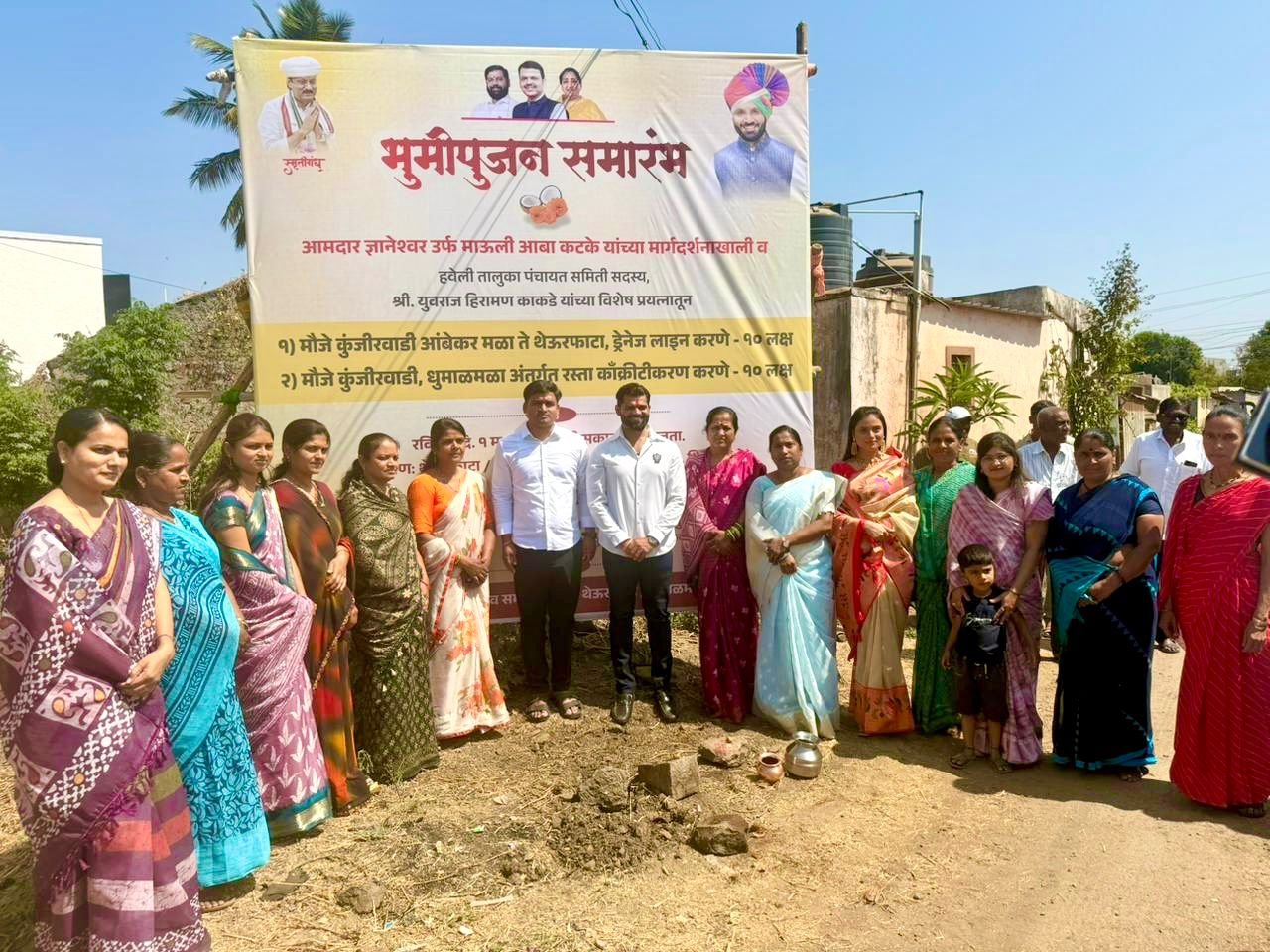 कुंजीरवाडी येथे विविध विकासकामांचे भूमिपूजन संपन्न, ड्रेनेज व रस्त्यांच्या कामांना सुरुवात.