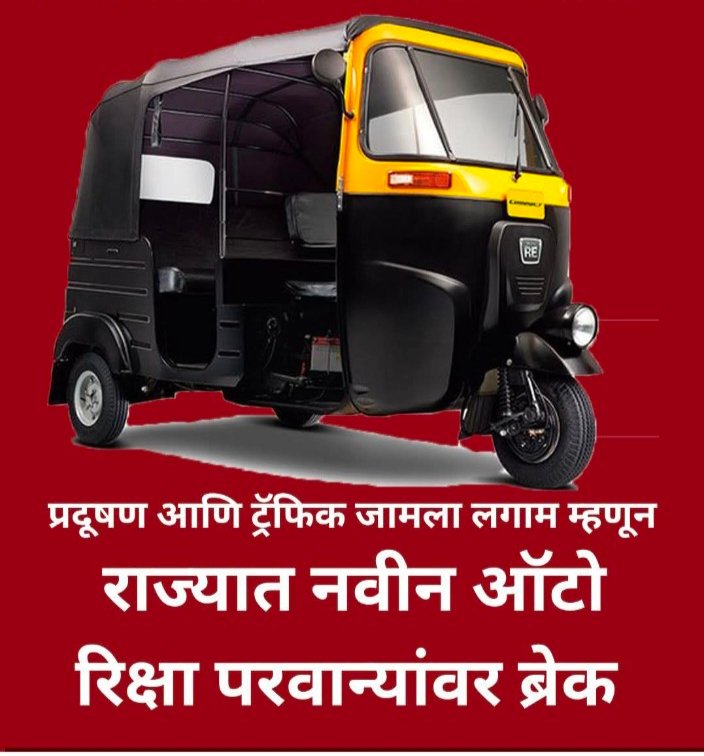प्रदूषण आणि ट्रॅफिक जामला लगाम म्हणून राज्यात नवीन ऑटो रिक्षा परवान्यांवर ब्रेक मुंबई--राज्यात वाढत चाललेली वाहतूक कोंडी आणि शहरी प्रदूषण...